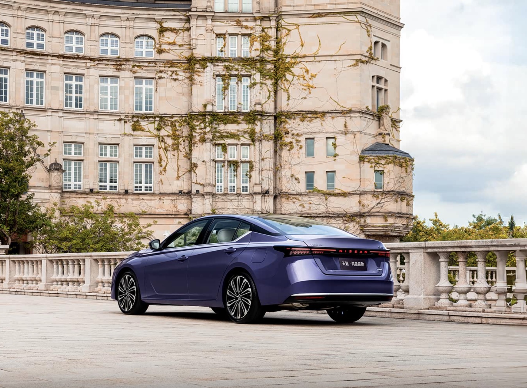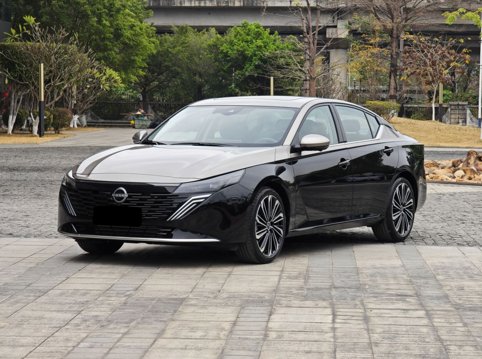 外观方面,新车延续日产V-Motion家族经典设计语言,核心升级是首次采用曜岩黑与流金搭配的黑金双车漆,灵感源自火山玻璃黑曜岩与金色矿脉,视觉上尽显高级质感,既沉稳大气又兼具精致格调,彻底区别于普通版本车型。前脸采用一体化封闭式进气格栅,将雷达与灯组隐藏式布局,搭配寰宇双子星LED大灯,灯组与格栅无缝衔接,贯穿式日行灯拉伸横向视觉宽度,点亮后仪式感与辨识度拉满,完美契合其中型轿车的定位。